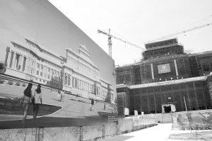 市文化艺术中心由博物馆、图书馆、群艺馆、中心文物库房等组成。目前,主体工程已经封顶,工人们正忙着进行室内外装饰,预计今年年底交工。“市文化艺术中心占了‘三馆’中的3个‘最’,建筑面积最大,总造价最高,占地面积最大。”该项目经理说,市文化艺术中心的外装修全部采用外挂大理石加玻璃幕墙,建好后看上去整体效果比较大气,造型比较别致,而且每层都建有斜屋面。室内不但有高近20米的精装修气派大厅,还有两个分别能容纳500人和300人的多功能厅。中心文物库房墙壁是混凝土保护墙,配有钢筋混凝土的地面和专用金库门。