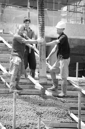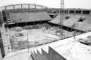 市体育馆主体框架全部施工完毕,球型网架结构在徐州已经加工好,目前负责安装人员已进场,正在现场为网架结构施工做准备,预计明年“五一”能够建成交付使用。来到市体育馆,记者看到这里一派繁忙,市体育馆的布局已经显现,偌大的体育馆被分为三部分,其中有比赛场、训练场和舞台。可容纳5000人的看台分布在比赛场东、西、南三面,北面是一个宽17米、长40米的大舞台,最北面是训练场。