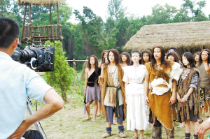 本报讯 炎热的天气挡不住人们似火的热情。昨天上午,淮阳县太昊陵统天殿前,来自国内众多媒体的记者纷纷将镜头瞄向统天殿月台上的“伏羲”和“女娲”。上午9时,电影《人皇伏羲》在这里举行隆重的开机仪式。扮演伏羲和女娲的男、女主角谭耀文、孙菲菲闪亮登场。