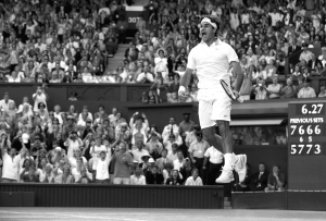 这是本届温网开赛以来费德勒打得最为艰苦的一场比赛。首盘以5比7告负后,犹如当头挨了一棒子的费德勒逐渐清醒了。虽然状态极佳的罗迪克一刻也没有停止对费德勒的“骚扰”,但作为二号种子的费德勒打出了自己的本色,依靠稳定的心理素质和丰富的大赛经验赢下了后两盘,尽管7比6(6)和7比6(5)的比分有些“难看”。第四盘,打疯了的罗迪克用6比3的比分再次让费德勒品尝了夺冠道路的艰辛,也把两个人拉回到了同一起跑线上。决胜盘中,尽管双方的比分交替上升,但是“费天王”终于笑到了最后,他以16比14结束了战斗。