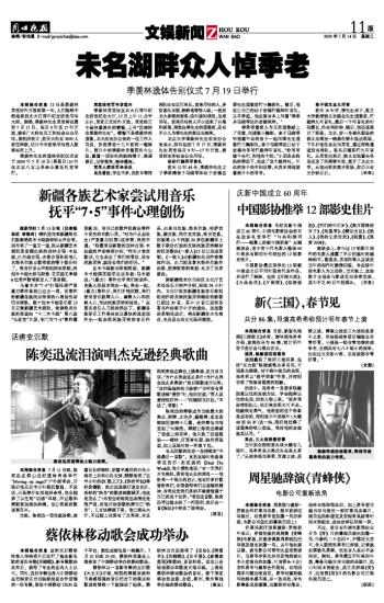 有点沉默的状态一直持续到“今晚最后一首歌”。直到返场时准备演唱迈克尔·杰克逊的《Heal The World》,他才感性地说:“有一天我打开电视机,看到他去世的消息……他给我一个很大的启示,他有好多好歌留给我们,有很值得我们去追随的精神,令我发觉我们真的不够爱惜属于自己的这个世界。”唱完这首歌,陈奕迅背过脸去抹了一把眼泪,然后在一首《淘汰》中结束了演唱会。