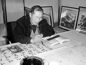 在人民美术出版社出版的《毛泽东故居藏书画家赠品集》中,有一位淮阳籍书法家的4幅《七律·长征》书法条屏,和大名鼎鼎的齐白石、张大千、郭沫若等人的作品同列。这位书法家的名字叫何仰羲。
