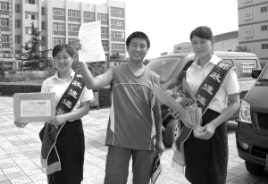 本报讯 “爸爸,我已接到香港中文大学的录取通知书……”7月15日,我市考生李登基高兴地打电话给家人。当天,他接到了市邮政局速递工作人员送来的香港中文大学录取通知书,同时还获得学校50万港币的奖学金。