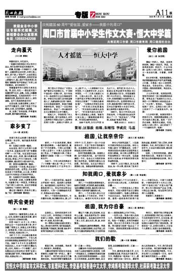 周口市首届中小学生作文大赛·恒大中学篇