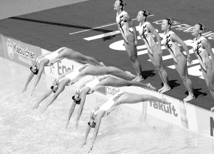 本报综合消息 北京时间7月19日,2009年罗马游泳世锦赛进入第三个比赛日,在当天下午的花样游泳集体技术自选决赛中,中国花样游泳队以96.667分获得了一枚宝贵的铜牌,这枚铜牌也是中国花样游泳队在世锦赛历史上的第一枚奖牌。俄罗斯队以98.833分成功卫冕,西班牙队以97.833分获得银牌。