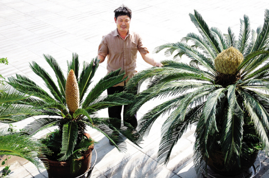 如今,铁树开花已不足为奇,但是一对“夫妻”铁树同时开花却很少见。昨日,周口市疾病控制中心大院内的一对铁树“夫妻”竞相开花,雄树开出的花形似宝塔,雌树开出的花呈球形。据悉,这对铁树“夫妻”相依相偎数十年,雄树已连续几年开花,雌树今年是首次开花。这一“夫妻”铁树竞开奇花的景象令人惊叹。 晚报记者 朱海龙 摄 线索提供 邓莉