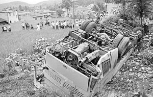 上图:7月20日拍摄的出事客车。
