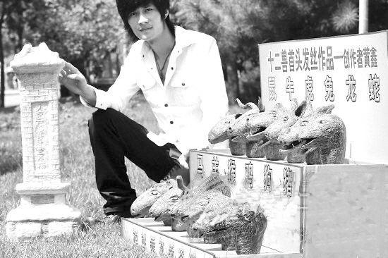 20日,北京一位时尚发型设计师展示头发丝作品“十二生肖兽首”与“人民英雄纪念碑”。为迎接祖国60华诞并展示发艺界的艺术文化元素,四川青年理发师黄鑫用碎头发制作了一套微型“十二生肖兽首”,每个以1.2公斤的碎头发制作,历时4个多月才完工。“人民英雄纪念碑”历时3个多月完工。中新 摄