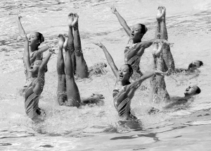 碧波池中,中国队选手在《黄河》的“咆哮”声中,以97.666分夺铜。花游“霸主”俄罗斯队毫无悬念地夺得集体自由自选冠军,劲旅西班牙队摘银。此前,中国花游队在世锦赛上的最好名次是上届的第四名,而本届大赛却在短短一周内,连续在集体和双人项目上刷新历史。这说明她们在北京奥运会上所获铜牌并非“主场之利”的产物,也标志着中国花游队跻身国际一流强队行列。不少队员表示,率领她们登上奥运会奖台的日本著名教练井村雅代尽管已经离开,但她将中国花游带上了一个新台阶。