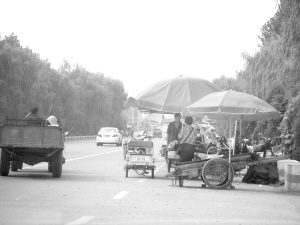 入夏以来,部分果农在周口大道沙颍河大桥北头快车道上摆摊卖水果,常有人停车购买。许多司机说,在路上摆摊经营易造成交通事故,希望有关部门管一管。