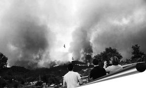 28日,在西班牙中部城市阿维拉附近,人们在远处观望森林大火。当日,西班牙部分地区气温高达40摄氏度,西班牙内政部向该国四分之三地区发布了最高级别森林火险预警。据新华社