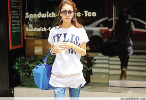 韩版女装夏装新款圆领短袖时尚百搭长款T恤。