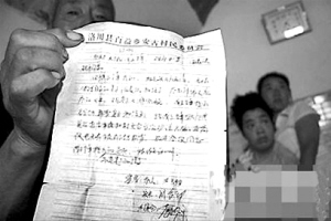 本报综合消息 1993年10月,陕西洛川县百益乡智障女温麦侠与同乡安古村略有智障的村民成玉峰结婚,育有两个孩子。目前,温麦侠身患围产期精神分裂症,成玉峰却到村委会开了个证明(如图),提出不要妻子和孩子。证明上盖有安古村村委会公章。这让温麦侠的娘家人哭笑不得。 (华商)