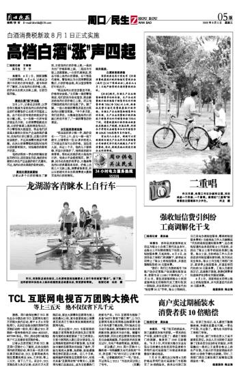 本报讯 8月1日,国家调整了白酒消费税。8月4日,记者走访周口市区的白酒专卖店、超市和酒行了解到,只有高档白酒价格上涨,酒价并未出现大面积上调,目前仍很平稳。