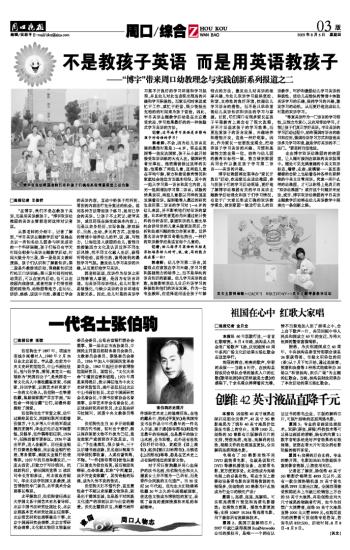 从郭老师的介绍中,记者了解到,“半日英语主题教学活动”是她在北京一所知名幼儿园参与研发成功的一个科研课题,孩子们每日有半天时间全部参与英语主题教学活动,时间大致分为三段,第一段是英文教师授课,孩子们认识和了解新知识;第二段是外教游戏活动,围绕新知识进行纯正口语训练;第三段时间相对机动灵活,可以在室内活动,也可以在校园内做游戏,或者把孩子们带到校园的植物角、动物园等地方,在玩玩、讲讲、练练、说说中自然、渗透已学会的英语内容,互动中给孩子把听到、看到的内容进行充分复述的机会。运用各种方法帮助孩子练习、运用已学会的英语。让孩子不止死记、硬背英语,或仅局限在课堂或课本内容上,而是以亲身经历、实际体验、游戏娱乐、自然、生动、多元的方式,在愉快的情境中培养幼儿的听、说、读、写能力, 让每位进入该园的幼儿,皆能自然接触西方文化及认识世界不同生活风情,把不同文化融入生活,获得听得轻松,说得自然,读得流利的最佳学习气氛。激发幼儿学习英语的兴趣,从而更好地学习英语。