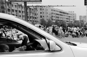 昨天上午,周口市区交通中路,一辆车牌号为京A×9375的白色轿车上,一名司机一手抱着幼儿、一手开车。一位路人说:“我开了30年车,见过开车时抽烟、吃东西、打电话的,还没见过抱着孩子开车的!真替他们捏了把汗。”阿龙 摄