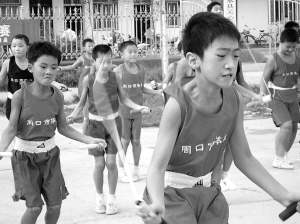 本报讯 为纪念北京奥运会开幕一周年,喜迎我国首个“全民健身日”,8月8日下午,被誉为“拳坛育苗人”的商水县拳击教练李冰,自掏腰包为青少年组织了一场跳绳争霸赛。
