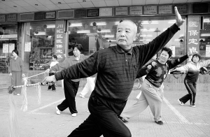 和往常一样,昨天6时许,五一广场一片空地上,卡式录音机播放着音乐,65岁的马义炯随着音乐缓缓舞动身躯,一丝不苟。