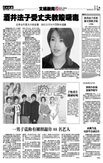 酒井法子受丈夫教唆吸毒