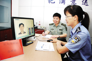 本报讯 8月11日,在市公安局沙南分局七一路派出所写有“军人身份证办理处”的牌子前,一位户籍民警认真地为军人采集人像信息。当日,该所民警开始为驻周现役军人和人民武装警察办理第二代居民身份证。据悉,这是我市首次为驻周军人办理居民身份证。