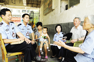 8月12日上午,周口市公安局沙南分局七一路派出所民警,来到市水务局家属院史秀兰老太的家,了解社情民意,征求群众意见,共话平安和谐。通讯员 郁发顺 摄