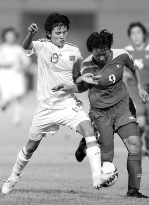 比赛开始后,双方在中场展开了激烈的拼抢。第30分钟,中国队11号古雅莎左路突破传中,朝鲜队门将出击失误,没有摘到皮球;但主队10号娄佳惠的扫射竟然打在边网上,国青队错过了最好的得分机会。上半场结束,两队暂时战成0比0的平局。