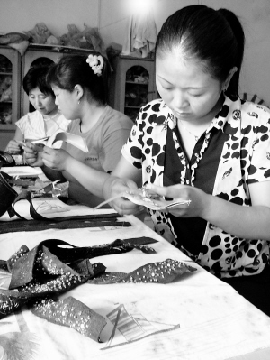 曹凌云看到农村留守妇女闲暇无聊,就萌发了一个念头,“在家门口帮她们找点活干,不出家门,还能挣钱,岂不是两全其美?”于是,她上网搜寻,看到广州一家珠锈厂发布的合作经营信息——与其合作加工珠锈出口,经济效益十分可观。她立即把这个消息向村“两委”作了汇报。去年11月,她和几个村委班子成员到广州实地考察后,认为可行,就以村委的名义与对方签订了合作协议。目前,全村有200多名妇女在自家从事珠锈加工行当,每人每天净收入30多元。