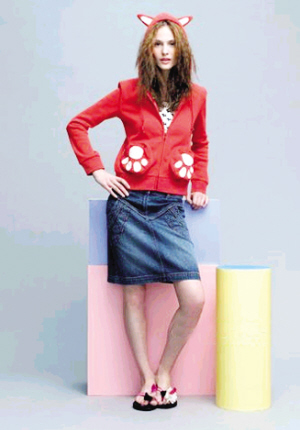极具细节美感的牛仔裙搭配卡通特色外套,童心未泯的你不要错过。