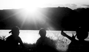 ▲8月13日,几名游客在夕阳下的黄河岸边拍照留影。在地处黄河上游的青海省海南藏族自治州贵德县境内,清清黄河水与周围景物相映成画,成为雪域高原上的奇美景观,吸引了众多国内外游客前来游览。 新华社发