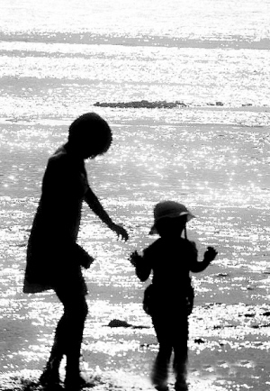 8月13日,游客在夕阳下的黄河岸边玩耍。 新华社发