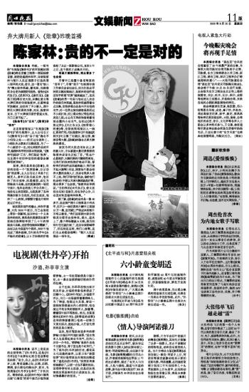 谈到为何大胆启用如此之多的新人时,手头掌握大量明星资源的陈家林却首先诉起了苦,“现在什么都涨价,大腕明星的片酬涨得更高,而我们拍戏的收购价格却不涨,留给我们的创作成本越来越少,我们请不起大腕啊!再说,国家每年都会培养大量的表演人才,但却有很多人演不上戏。我们不给他们机会,谁给他们机会呢?不要以为请大腕演就是好事,观众看多了也会烦。”陈家林还举例说:“当初我拍《末代皇后》,姜文还没出名呢!选演员,没有身价之分,只有选对和选错两种结果。”