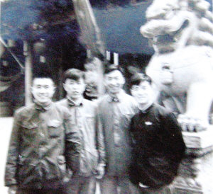 杨质,航空工业洛阳613研究所退休职工,1959年与张忠旭一同考入北京大学数学力学系计算数学专业。1965年毕业时,张忠旭被分到二机部第九研究院,杨质被分到二机部北京401所,从此两人没再见面。后来杨质听人说,张忠旭在1971年前后调回河南商水县。据杨质老人回忆,那年考入北京大学数学力学系计算数学专业的河南考生有杨质、张忠旭等3人,他们同寝室的4人(图二)有雷功炎(北京人)、周铁坚(沈阳人)、张忠旭(右一)、杨质(右二)。在校期间4人情同手足,无话不谈。毕业论文答辩时,杨质与张忠旭的论文题目不谋而合,都是《贝鲁利方法在运输中的运用》。1999年学校百年校庆时,同学们纷纷回到学校,却没有见到张忠旭。今年他们入学50周年纪念日,杨质老人又一次赶到学校,直到庆典结束也没有见到张忠旭的身影,老人深感失落。