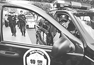 8月22日,特警在西单附近巡逻。当天,北京警方启动二级巡逻防控方案,整合各类安保力量加强街头巡逻。据介绍,随着新中国成立60周年的临近,北京社会治安防控等级还将逐步提高。新华社发