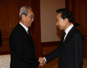 李东官说,朝鲜吊唁团向李明博转达了朝鲜最高领导人金正日关于发展朝韩合作关系的口信,李明博介绍了韩国政府“一贯而坚定的对朝政策”,并请吊唁团向金正日转达。李明博说,只要南北双方真诚对话,就没有解决不了的问题。