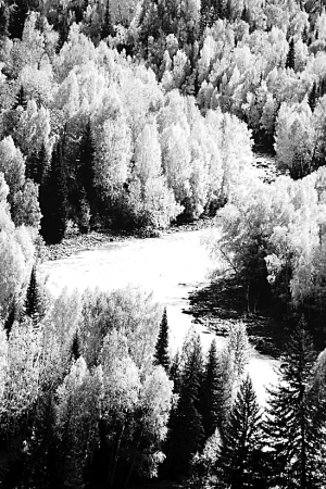初秋的喀纳斯,既有着热烈与辉煌的景象,又有着舒展与悠长的情怀。喀纳斯河,就好像是一条蜿蜒的翠绿色玉带,或曲折地缠绕在山岭间,或随意地舒展在草地上。河岸的白桦树纷纷挥扬着生命的旗帜,使那种明亮的金黄色枝叶与河流一起绵延不绝,就像一条色彩醒目的绶带,披挂在阿尔泰山的秋天里。