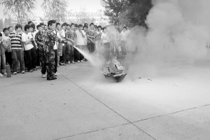 当天下午,消防官兵向师生们讲解了灭火器的操作使用方法,学校教职工、学生分组进行了灭火亲身体验。消防官兵还给师生们示范原地着战斗服、避火服和隔热服,表演了消防“时装秀”,并展示了消防器材装备。