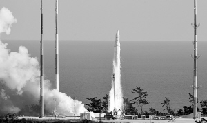左图为韩国首枚运载火箭“罗老”号(KSLV-I)发射升空瞬间。据新华社