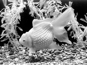 一次,我在妈妈单位吃完早餐,拿着吃剩的馒头来到小水池边喂金鱼。