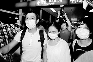 前日晚间10时35分左右,刘德华抵达香港,和朱丽倩手拉手一同出现在媒体面前。俩人穿着白色情侣装,手上都戴着不少佛珠。当时,大批记者早已在场等候,两人一亮相,记者立刻蜂拥而上,因为过于兴奋,整个现场都处于一种骚动的状态。从闸门到车子的短短几十秒路程,华仔足足走了近10分钟。一路上,华仔都用身体护住朱丽倩,避免碰撞。在中途,华仔还一度停下脚步,手持话筒配合媒体拍照。但他对于自己的恋情并未正面回应,只是说:“没有特别想讲的,多谢大家的关心,我也不打算解释那么多。现在我想先带她回家休息。”