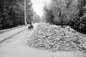 昨天,市民王先生反映,在周口市区大闸西侧的路上堆了很多建筑垃圾,已经好几天了。这些垃圾堵了一大半路,严重影响居民出行,希望有关部门能及时清理。晚报记者 朱海龙 摄