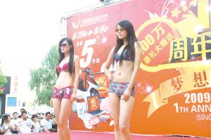 9月6日,周口市区一商家举办3周年庆典,各名牌服装展示了秋季新装,尤其是一款文胸的新品展示,吸引了众多消费者观看。
