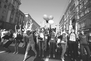 9月5日,俄罗斯大学生参加在莫斯科特维尔大街举行的游行活动,庆祝莫斯科城市日暨建城862周年。