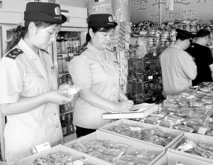 昨天上午,扶沟县工商局城关工商所执法人员在县城一家超市检查上市月饼。