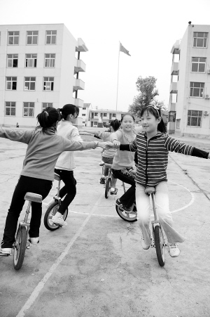 “目前,我校会骑独轮车的已有300多人,最小的只有6岁。2006年5月,我校的12名学生参加了‘省青少年体育俱乐部独轮车比赛’,还获得了个大奖。”副校长陈辉自豪地说。