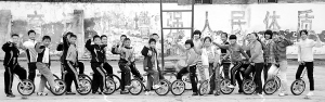 昨天,该校副校长陈辉告诉记者,这个独轮车队始建于2002年,经过几年训练,学生已能表演多组动作,学校举行的运动会、教师节演出,独轮车队的表演是保留节目。