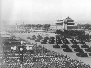 10月1日,是观礼代表们感到最幸福的一天。 当日,天安门广场一片红色的海洋,广场上,十几万红卫兵用鲜花组成了一个花海,表演出各种各样的政治性很强的标语口号。上午10时,毛主席出现在天安门城楼,群众顿时一片欢呼。12时许,毛主席又走到天安门东西两头,与观礼代表和广场上的群众见面。