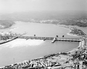 1970年12月30日,葛洲坝水利枢纽工程破土动工。1974年10月,主体工程正式施工。整个工程分为两期,第一期工程于1981年完工,实现了大江截流、蓄水、通航和二江电站第一台机组发电;第二期工程1982年开始,1988年底整个葛洲坝水利枢纽工程建成。图为建成后的葛洲坝全貌。(新华社发)