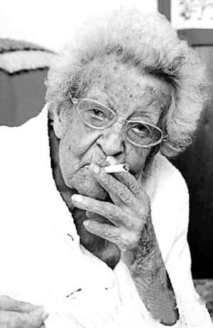 据新华社电 家住英国克罗伊登市的兰利(如上图)从1914年一战爆发后便开始了超长的吸烟生涯。香烟帮助她熬过两次世界大战的洗礼。每天5支烟的生活习惯伴随这位102岁的老太走过了95个春秋。据估算,兰利吸掉的香烟总数超过17万支。如今,高龄的兰利决定戒烟。