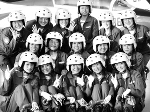 空中女飞行员梯队16名成员全家福(7月14日摄)。2009年的国庆,天安门上空将出现一抹靓丽的色彩:空军首批战斗机女飞行员将首次代表中国空军女飞行员驾驶国产战斗机参加空中受阅。新华社发