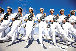 平均年龄只有18周岁的水兵方队,由于每天都进行军姿练习和大强度训练,每名队员平均身高长了1.8厘米,而体重平均减少了8公斤。